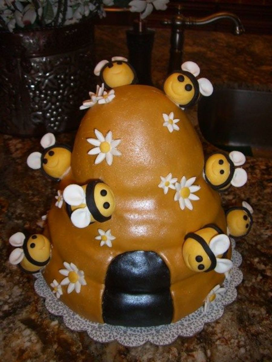 My second fondant cake all made with MMF and a light dusting of yellow luster dust on hive.