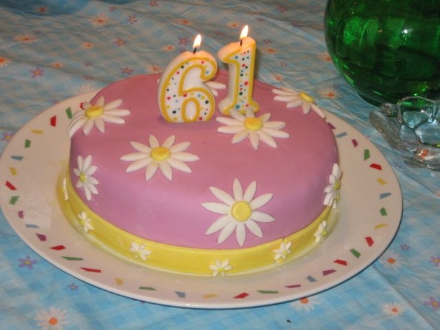I made this for my mother-in-law's 61st birthday. The pink is MMF-which I made on my own. The flowers are also MMF