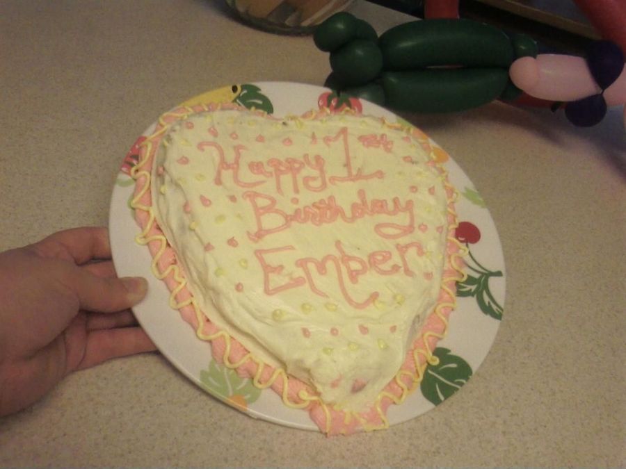 This was a sweet tart cake with cream cheese frosting for my friends daughters 1st birthday. You can see where the kids couldn't keep their fingers out of the frosting lol
