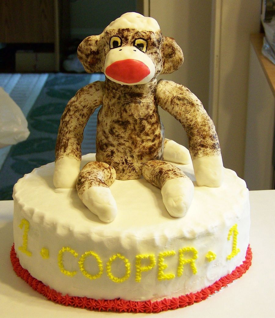 This was for my nephew's first birthday. He carries his sock monkey everywhere and he couldn't figure out how he got on top of his cake!!