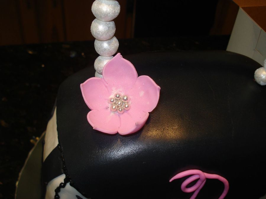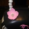 Strawberry cake with cream cheese filling. Pearls made of fondant.