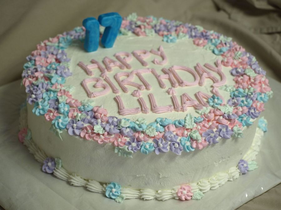 WHipping frosting, white and chocolate cake with chocolate and coconut filling.. Love drop flowers!lol