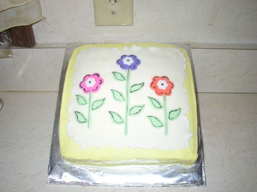 Just a simple cake for friends coming in from out of town. Spice cake w/BC icing. Idea came from Celebrate with Fondant. Not real happy with the Food Writers I bought.