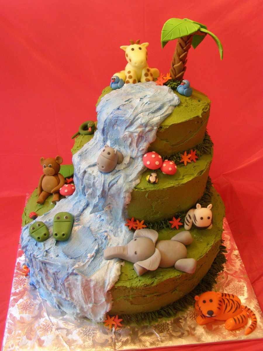 3 tier jungle cake for my daughters 15th birthday. All buttercream, fondant animals Thank you dods for the inspiration for the animals!!