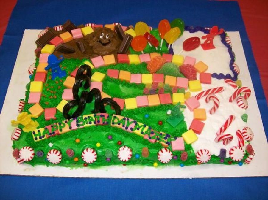 Candyland cake for my neices b-day. SOO much candy and her dad's a dentist! Ha! Choc/white cake with b/c. Lot of fun to make!!!
