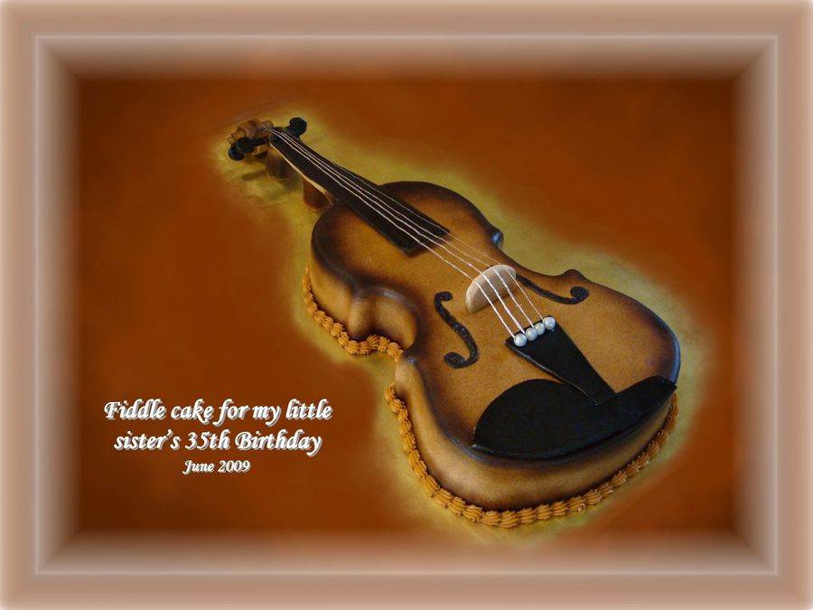 This is my first violin cake. I have worked with my real fiddle on the table and started by drawing freehand my template on paper. Then, I carved the violin out of a rectangular cake and used gum paste to do the chin rest, tailpiece, finger board, tuning pegs and scroll. The brigde is made out of fondant and I have used metallic thread for the strings. Many hours and late nights have gone into this; now I hope it will survive the 1 hour drive to a cottage for a birthday celebration!