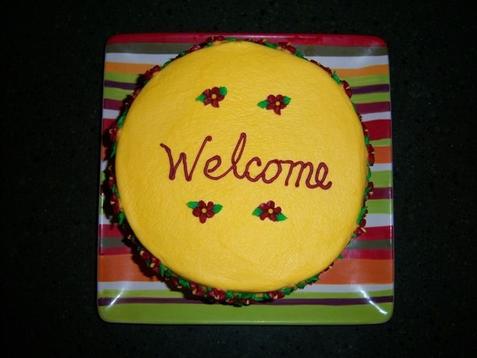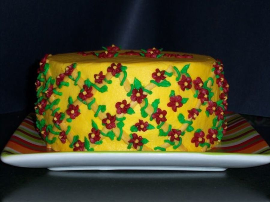 Just a small 6" practice cake to serve to friends. I went a little overboard with the flowers -- I should've left more vine and trellis showing. Zucchini cake with buttercream.