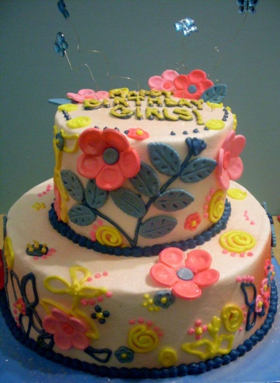 It was said for me to do a girly cake..It did not turn out quite like I wanted it to, but maybe she will like it. The colors are much prettier in person, but I have a terrible camera. Thanks for looking
