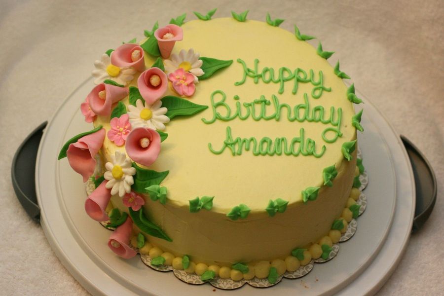 I did this for my friends 30th bday party this weekend. Her favorite flower is the calla lilly. I made pink ones (mini ones) out of gum paste. The daisies and apple blossoms are royal icing and the leaves are fondant...everything else is buttercream