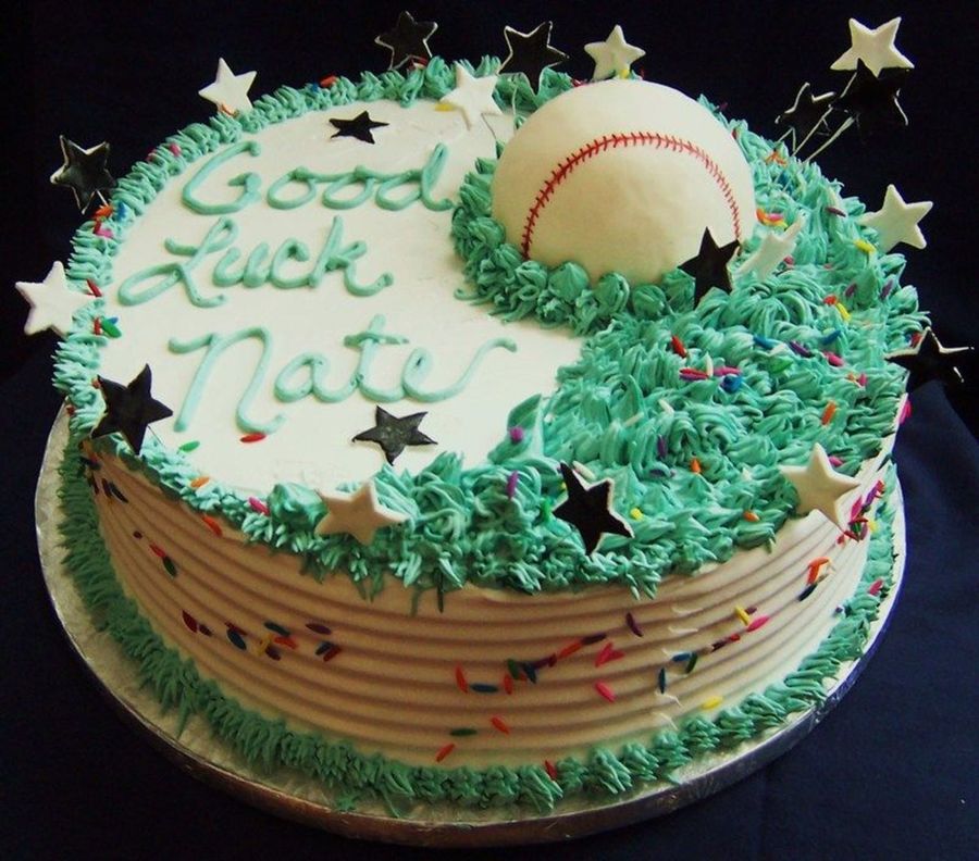 Iced in Rich's Bettercream with fondant accents and fondant covered baseball. Used edible ink marker for the baseball stitching. This was a quick cake for a White Sox fan so I just painted some premade stars with food gels.