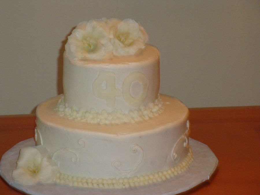 very simple. Chocolate paste flowers on top. Chocolate paste pearls.