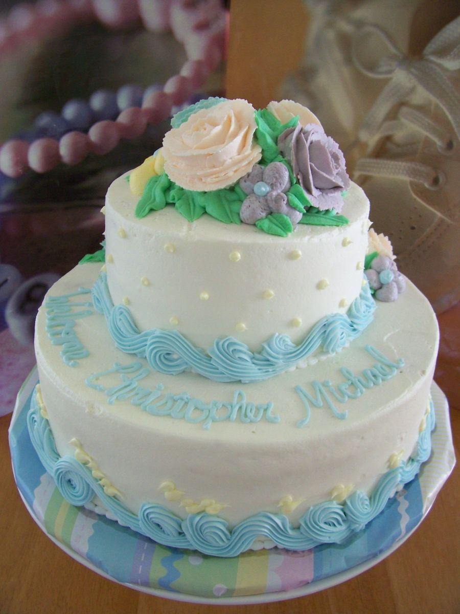 Idea found from a website frosted with whip cream, flowers are whip cream, detail around sides and writing is in buttercream