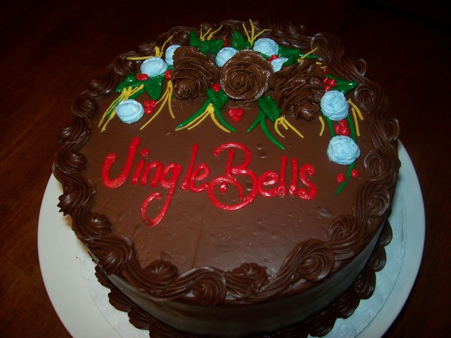 Photo idea came from ACD magazine frosted in whip cream, detailed in buttercream **other views of this cake - frosted in chocolate ganache**