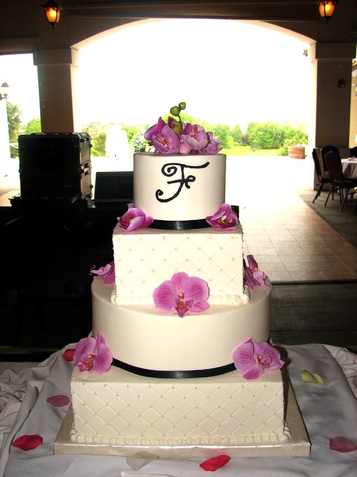 Hello CCer's heres my favorite cake from this weekend. I couldn't wait to do this one. My friends daughter was getting married and I just loved the version that SugarShack did so I showed here the picture. I know mine doesn't look as good as her's but I am pretty proud. Flavors are Carrot (6" round) with Cream cheese filling, Carrot with Butter cream fill (8" Square) Lemon Poppy with raspberry (13" round) and Triple chocolate fudge (14" square) Thanks for looking