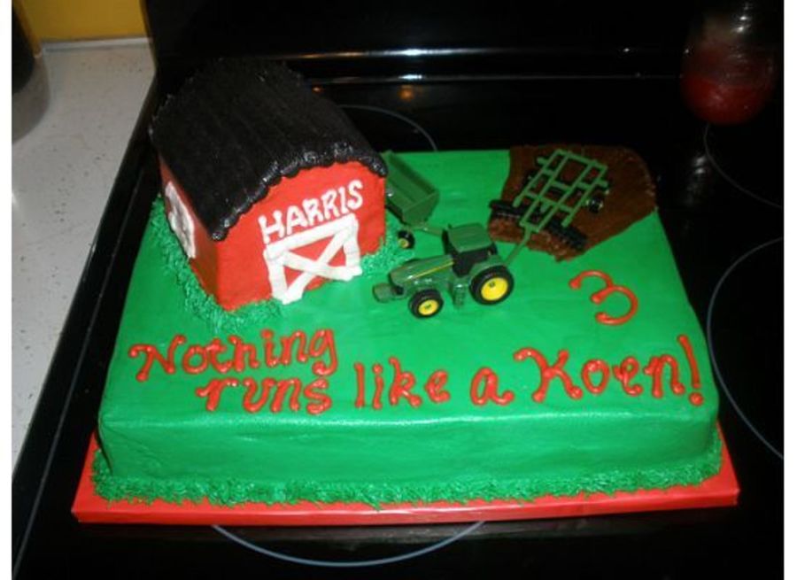 Half & Half sheet cake white & Choc iced in BC with toy tractor.