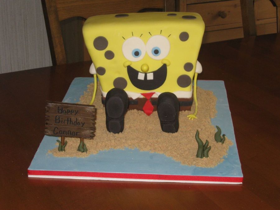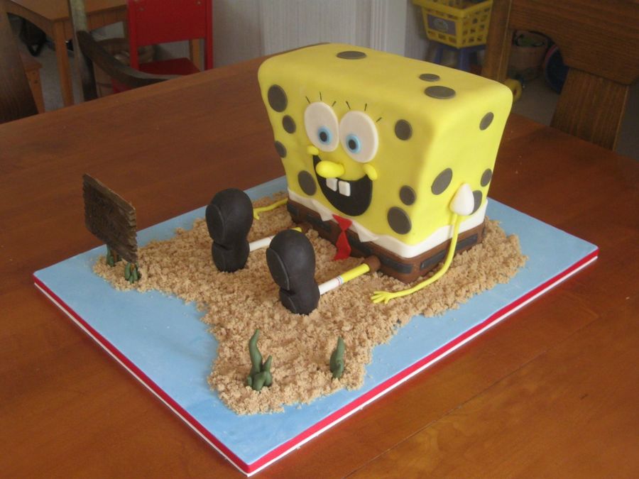 I thought this cake was going to be a disaster, but it came together in the end. Good thing Spongebob has spots to cover flaws!