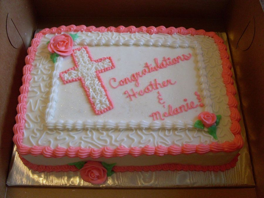 This is the cake I made for two girls' confirmation. The whole thing is iced in buttercream with edible sparkles on top.