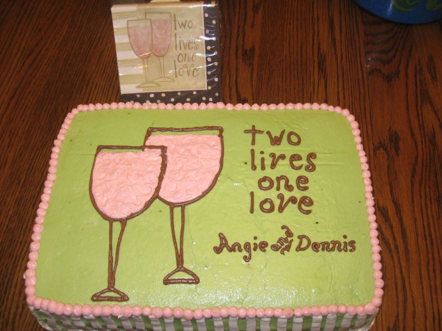 Yellow cake with cream cheese buttercream icing. Designed to match the napkins. The sides have white stripes on green background instead of a bottom border.