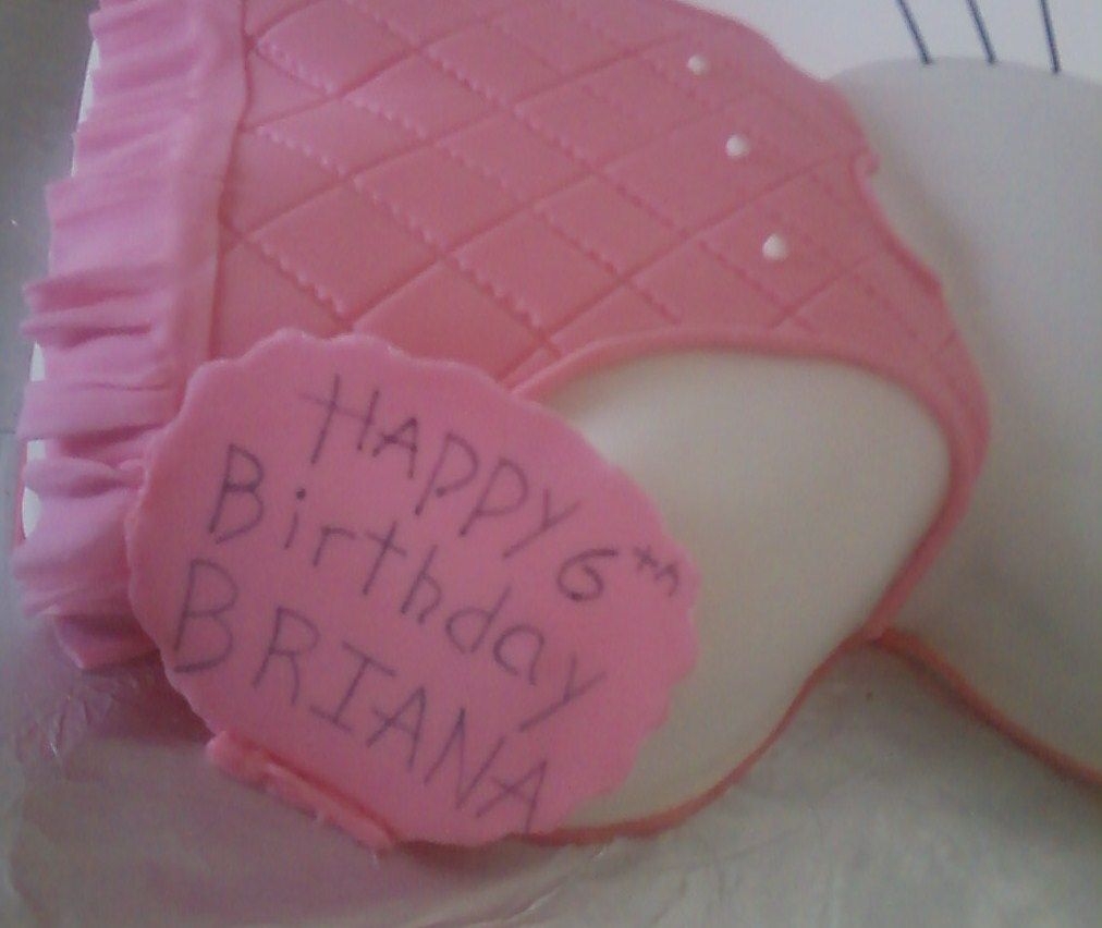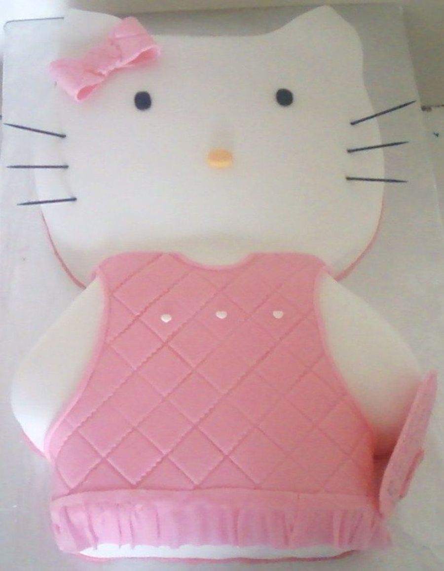 Head is chocolate on chocolate cake, the body is chocolate on white cake. Covered in fondant with 50/50 dress and bow. This was for my niece, her and kitty were dressed alike.
