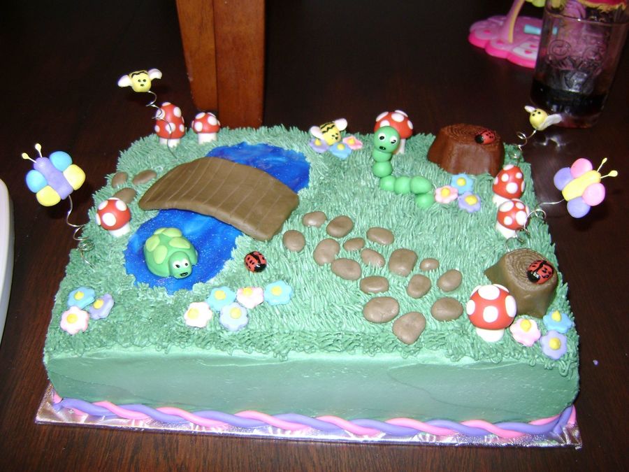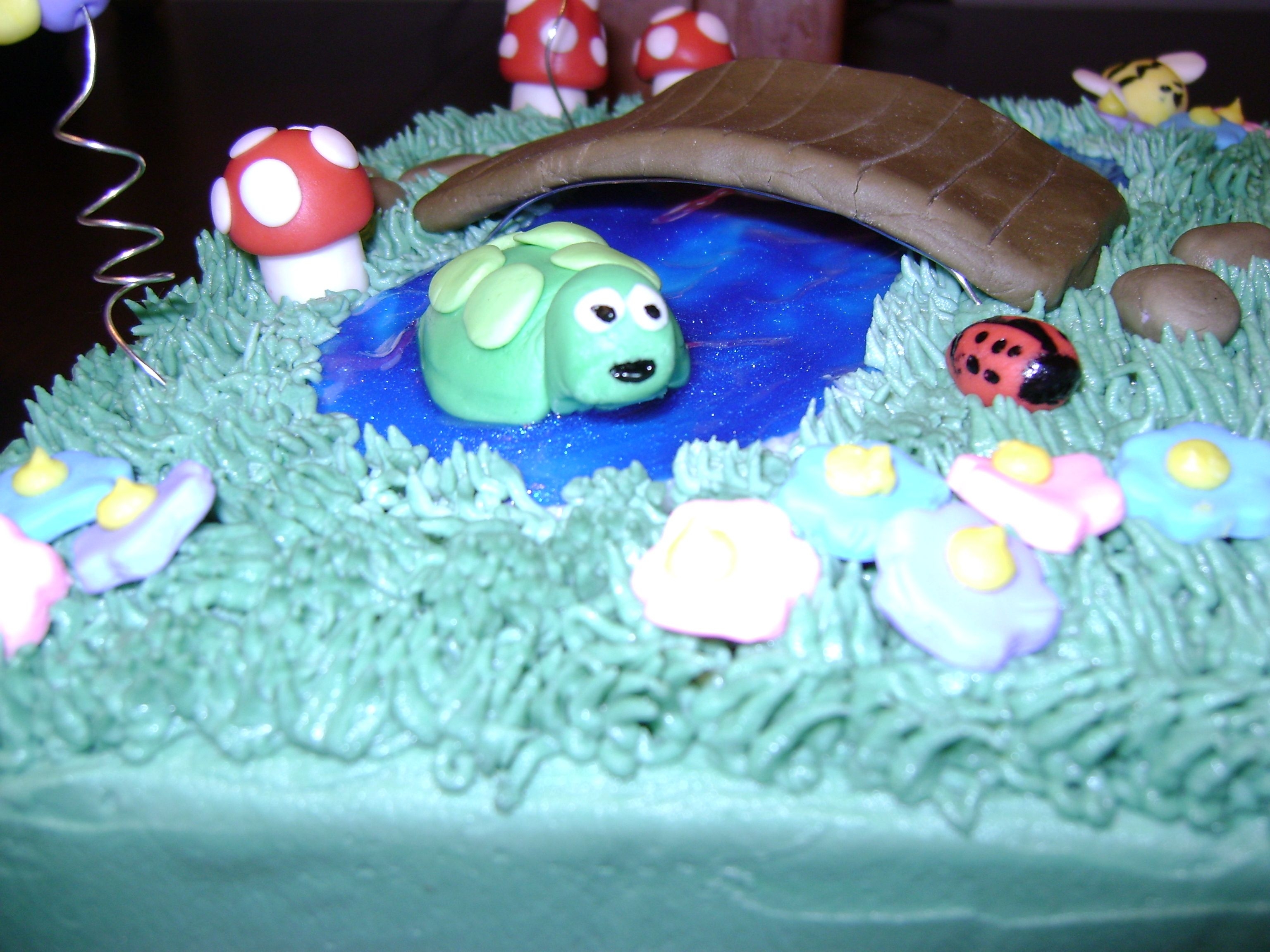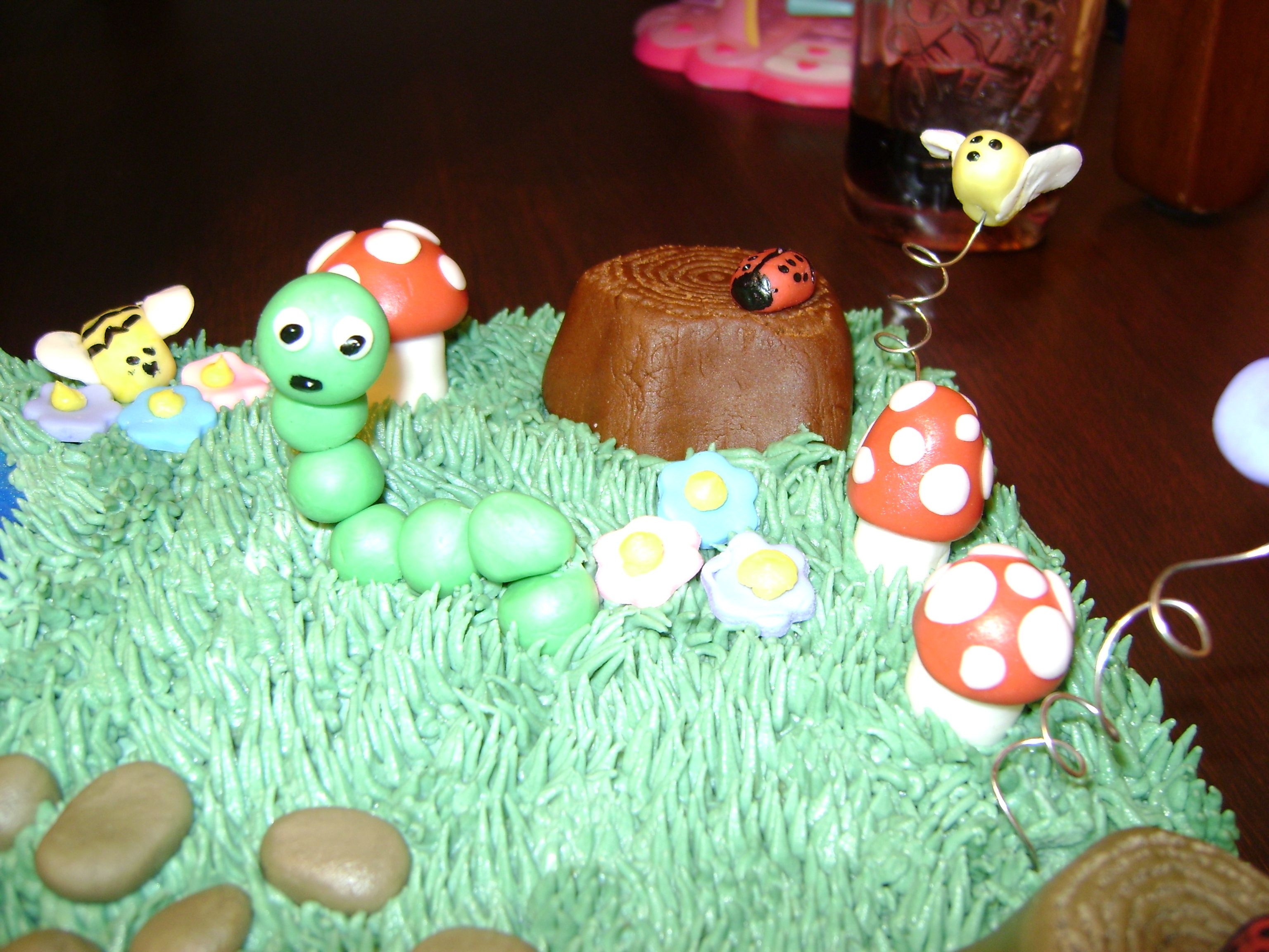 White cake with choc mousse filling, my sister and I did just for fun to try some new ideas, most from everyone at cc. iced in buttercream, with fondant decorations. we love this cake and had tons of fun doing it!