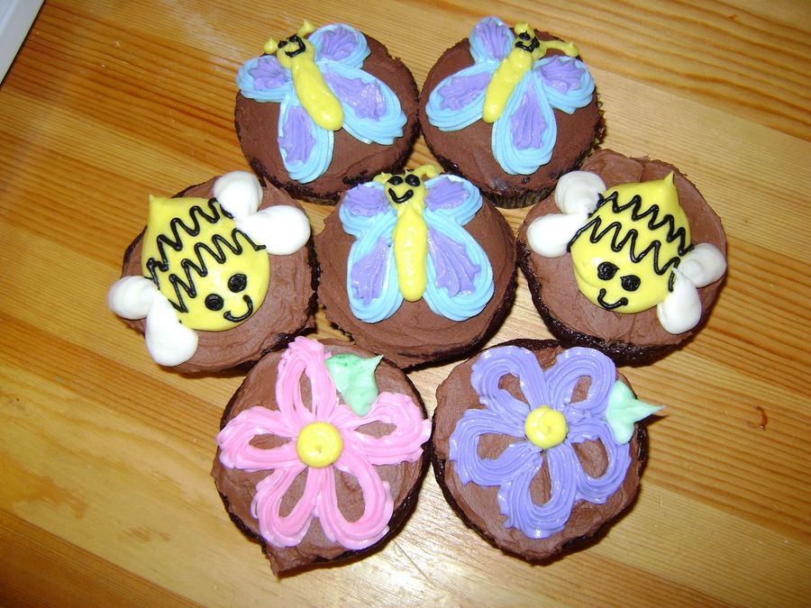 chocolate banana cupcakes with chocolate gnache icing decorated with buttercream. did these for a friends mother for her birthday, third time i made them and always a hit!