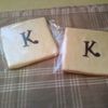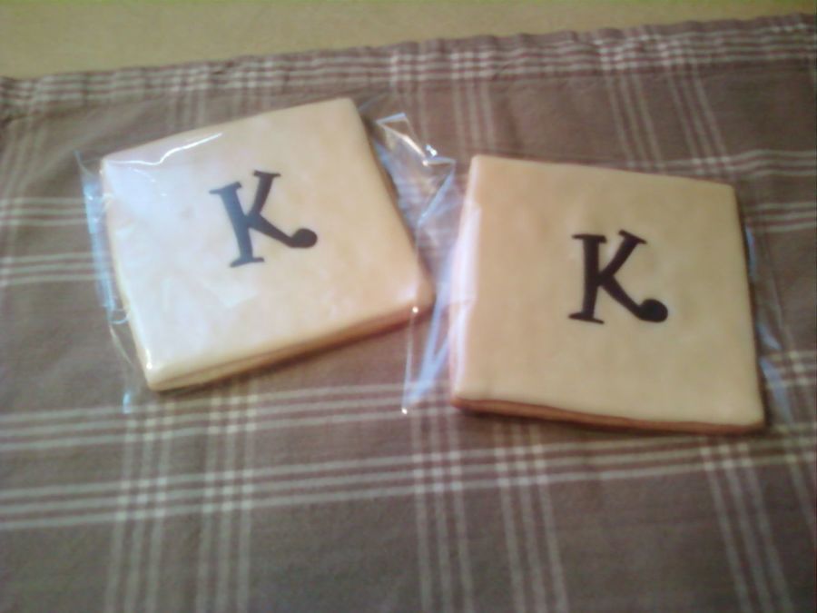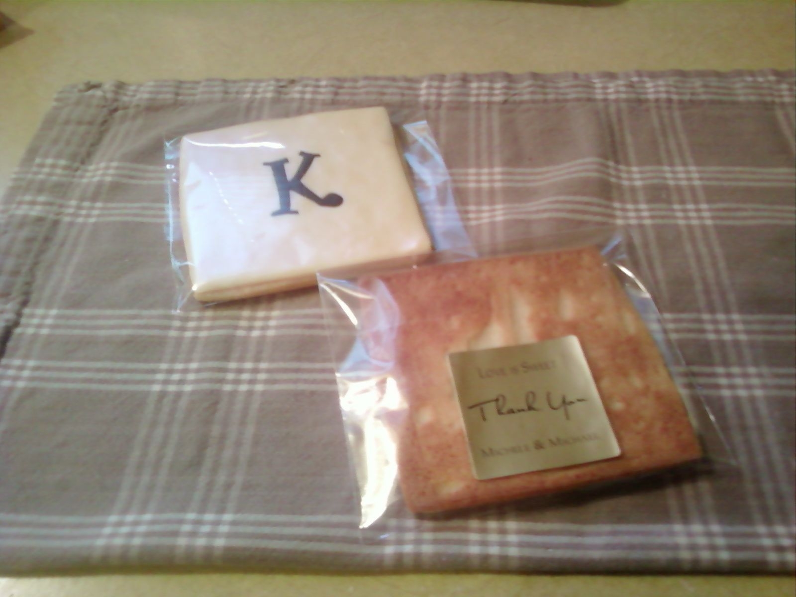NFSC covered in ivory fondant and oyster luster dust on top. Monogram is made with the FMM monogram cutter. Bride provided sticker for bck.