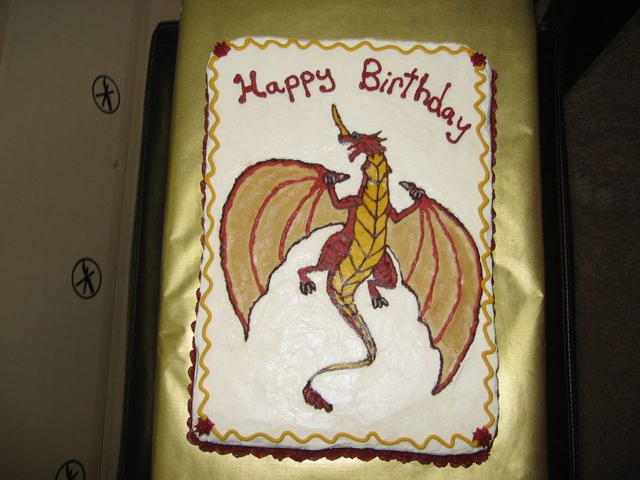 I made this cake for my son, using the frozen buttercream transfer method. I actually freehand sketched the dragon because I couldn't find the right picture anywhere.