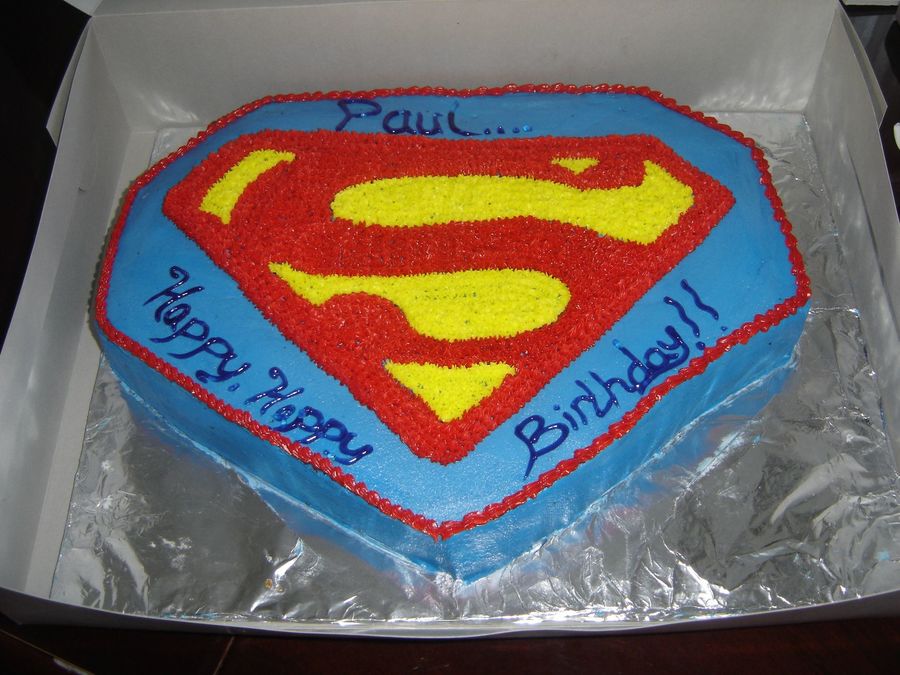 Client requested a Superman logo. It's filled with RPBC whipped cream, half yellow and half chocolate fudge cake. I wish It would have turned out better...I used two, 9 x 11...had I had a sheet cake pan it would have come out more level.