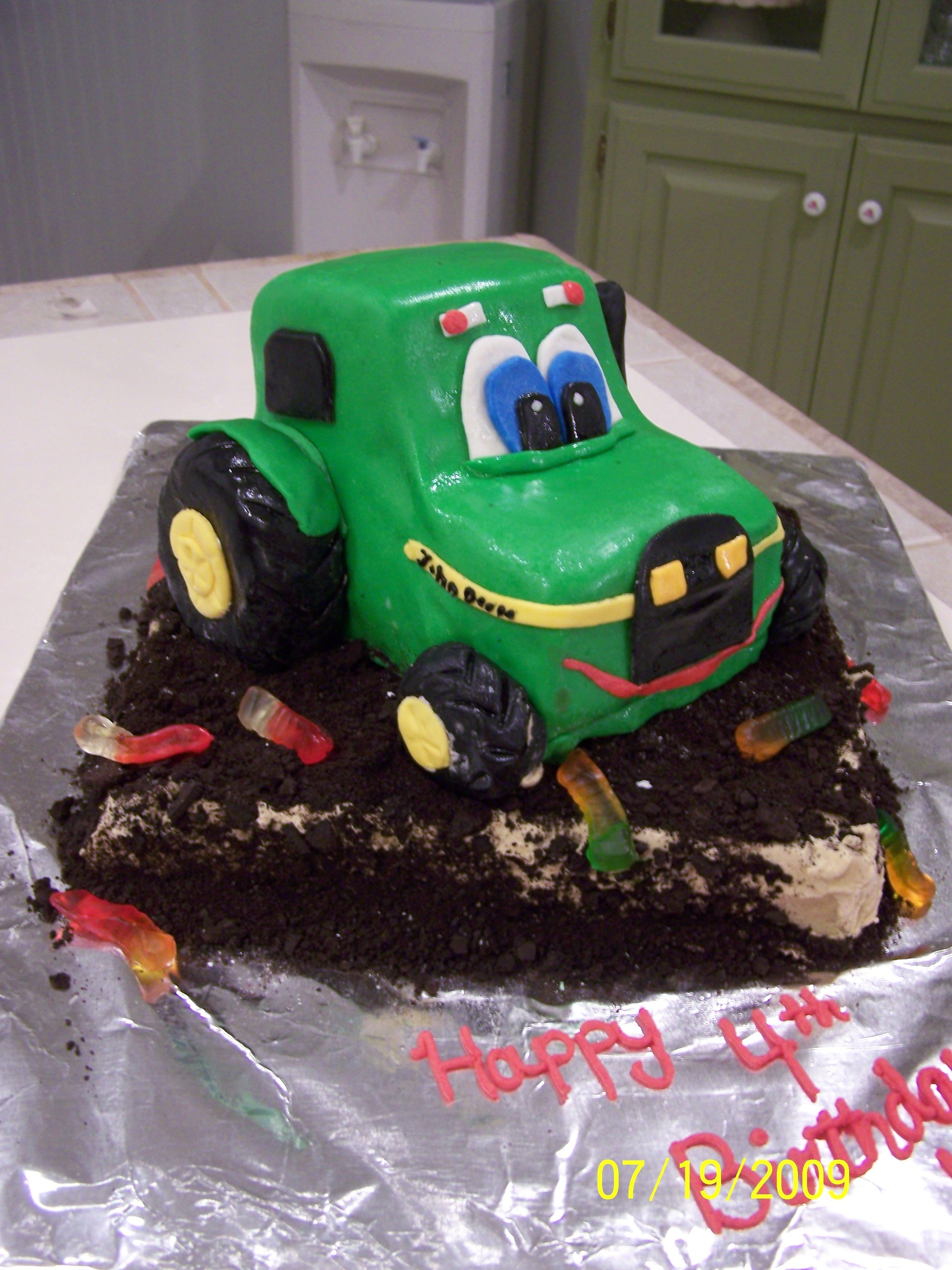 Made from a loaf pan, the little boy wanted John Deere and gummy worms. Thanks for the inspiration on this site!