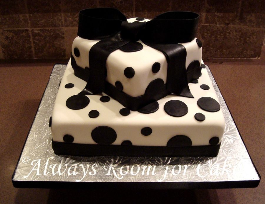 Black fondant polka dots, ribbon, and bow. Thanks for looking!