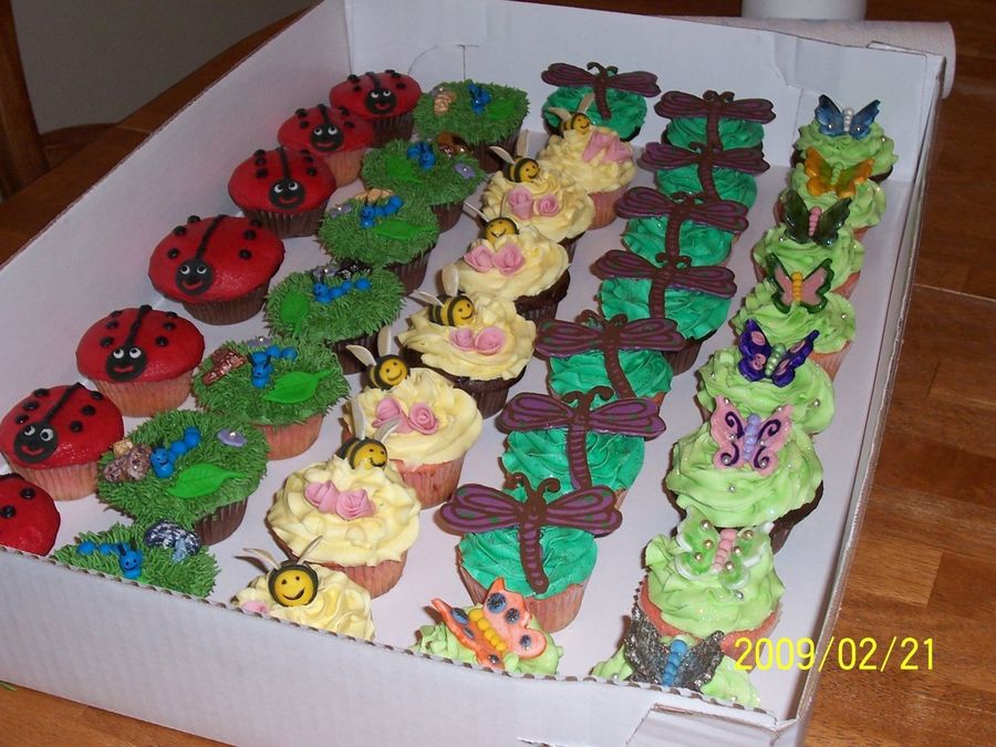 Pretty bug cupcakes for a little girl's fifth BD party