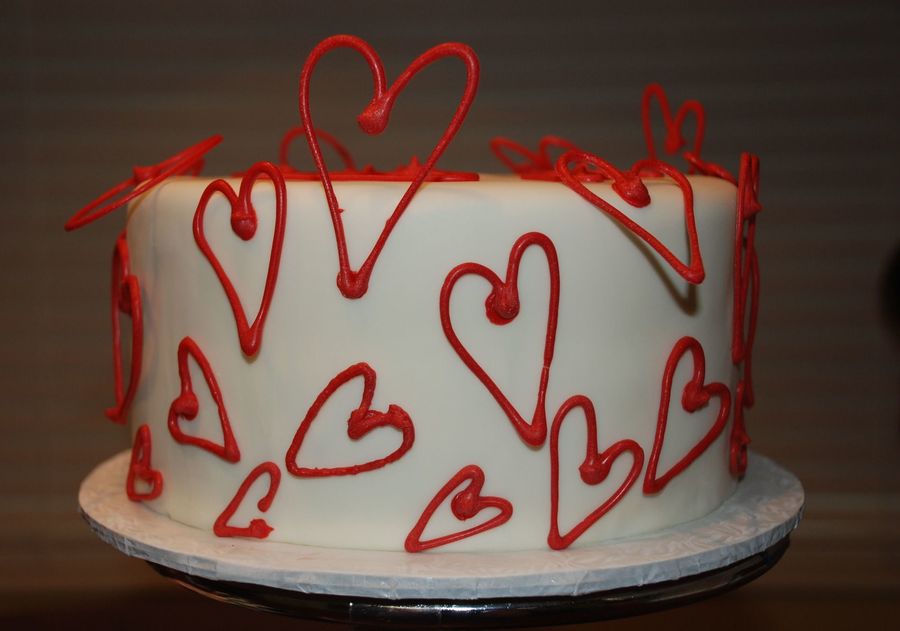 This is a white cake with buttercream covered with MMF. The hearts are a technique I seen on the Food Network Cake Challenge. They are candy melts that I just drew on wax paper and let dry. They peeled right off and I stuck them on the MMF with the candy melt. I couldn't believe how easy this was. I will use this techinique many more times, I'm sure.