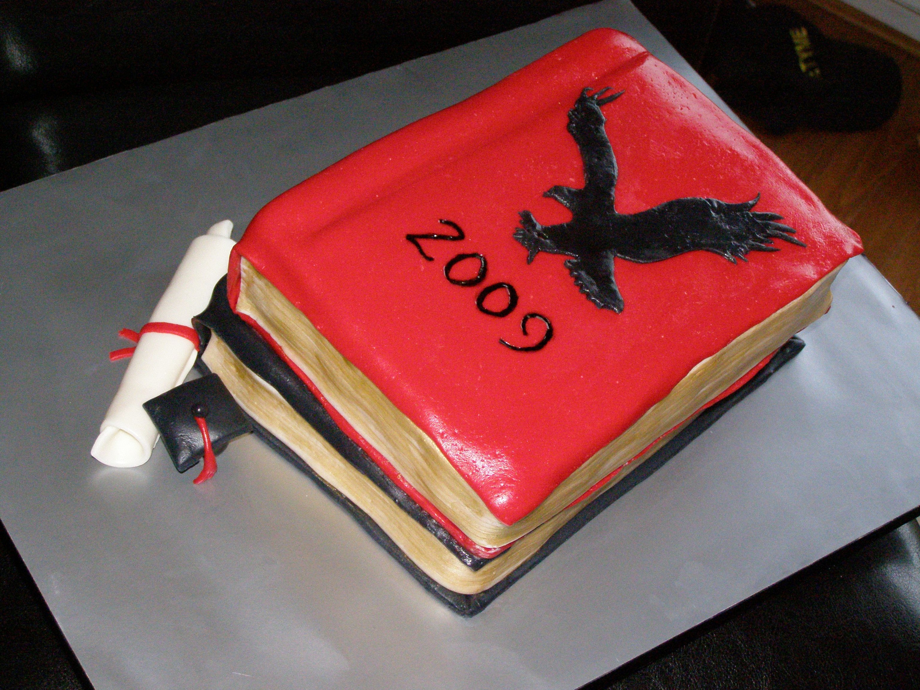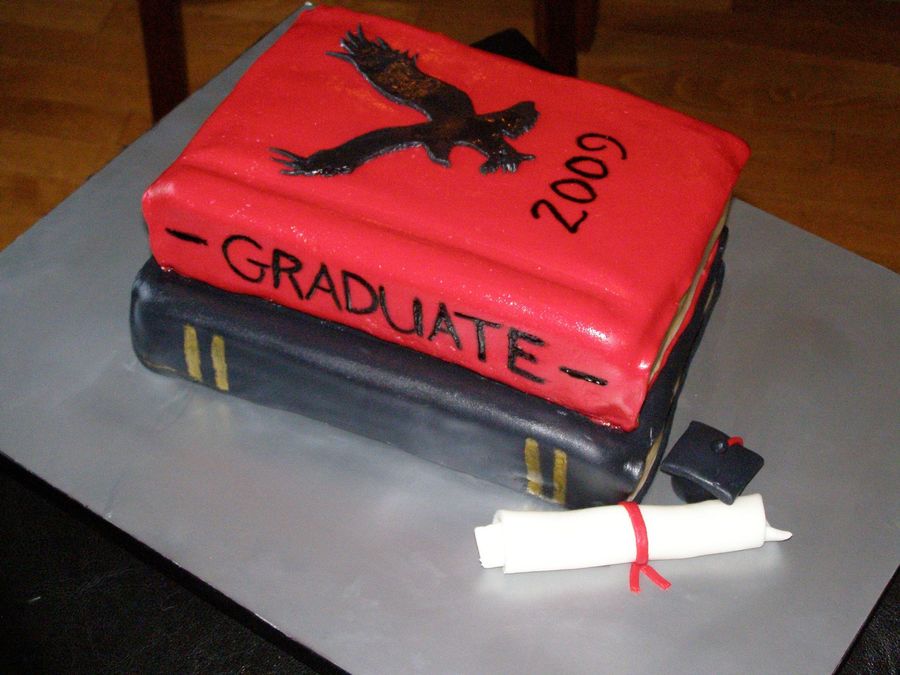 I have seen this cake many times before so I gave it a try when asked for a red and black grad cake. All MMF and painted lettering