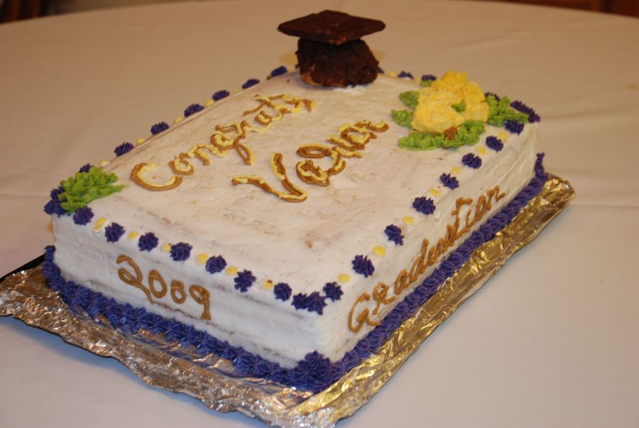 This is a graduation cake made for my oldest nephew graduating from high school. Yellow pineapple cake with buttercream pineapple and almond filling. He is very health conscious. So, I tried to use as little cream as possible. The finish tell it all. I used the cut out cake bits to form the graduation cap which is covered with chocolate. I have used a square graham cracker covered it with chocolate and used it as the top of the cap.