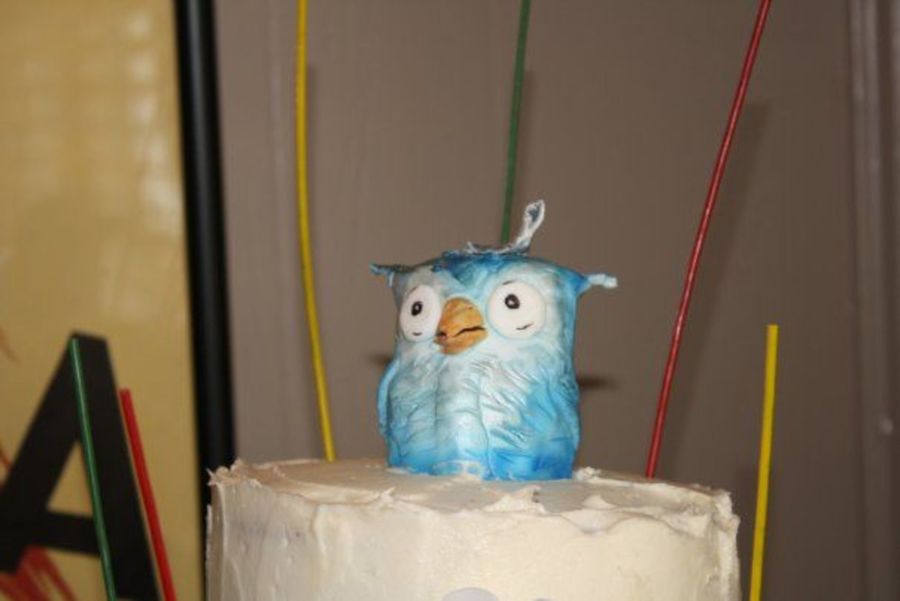 Marzipan covered in white FondX and painted. It was the topper for the birthday cake I did for my friend who's a Rice U graduate.