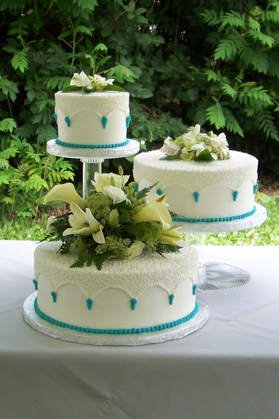 This was a white chocolate marble cake with buttercream filling and icing. They wanted something different but simple. The color matched perfect. cornili on the top of each. This design is from a Wilton Tiered Cake book
