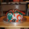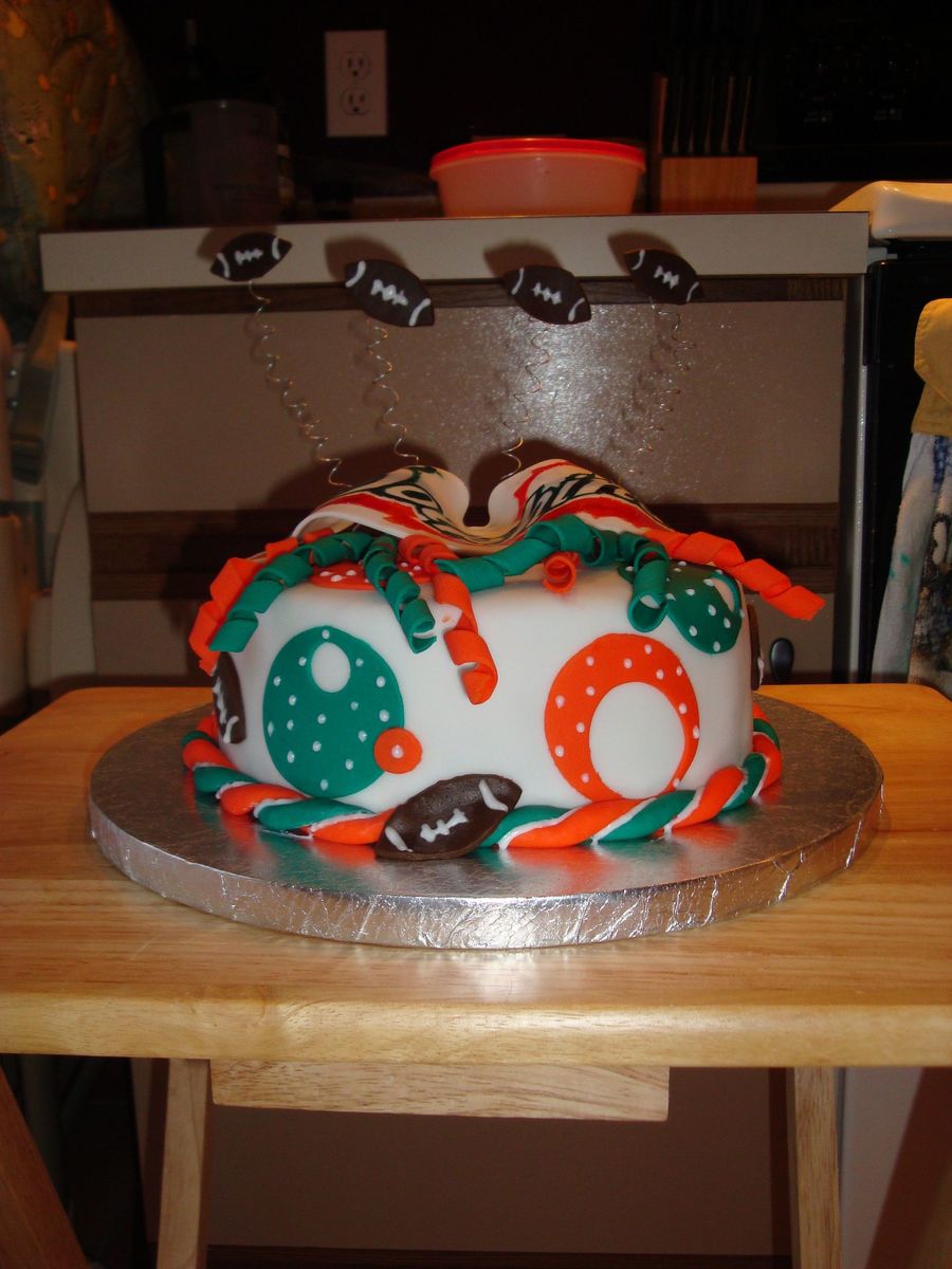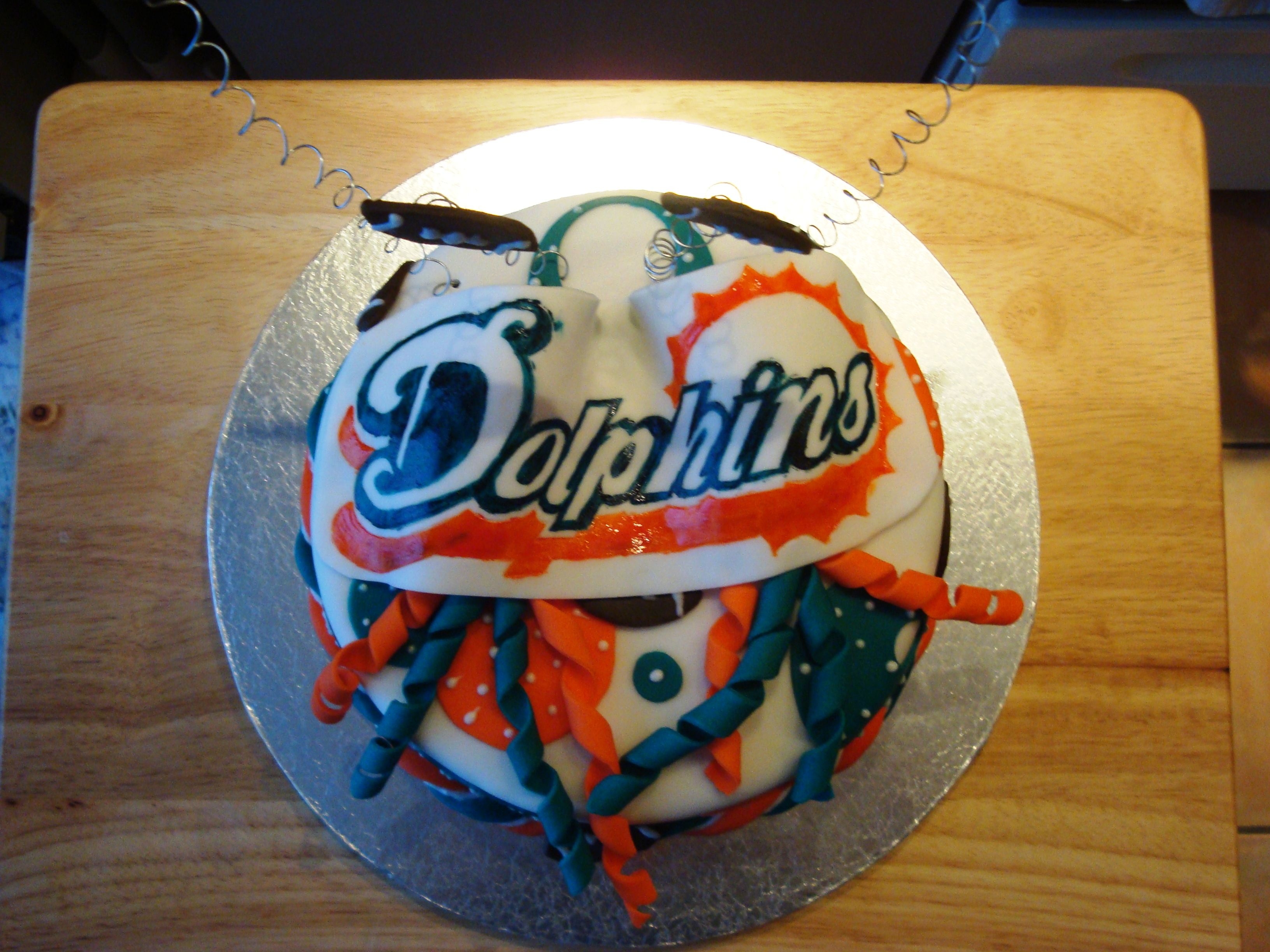 Made this for my husband who is a huge Miami Dolphins fan for Father's Day. It's chocolate fudge cake with chocolate buttercream icing. All fondant... Dolphins logo is hand painted!