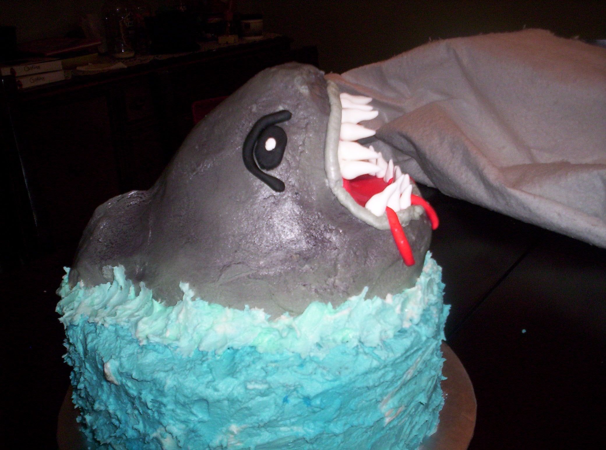 Combined many great ideas from this site and others to make a shark cake! My first with molded RKT!! How miraculous is that stuff! :)