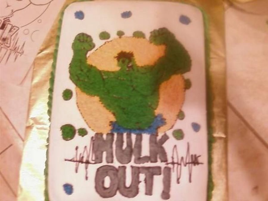 My son wanted a hulk cake...coloring book transfer using the wax paper and a stick pin.
