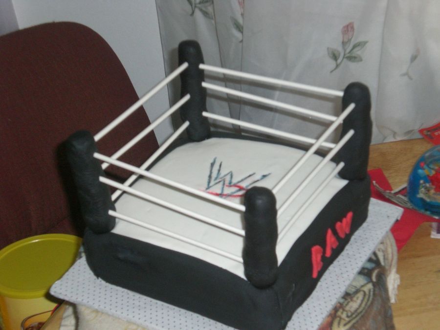 I did this cake for a young boy who is a wrestling fanatic. RCT for the posts, everything in fondant, marble swirl cake. TFL