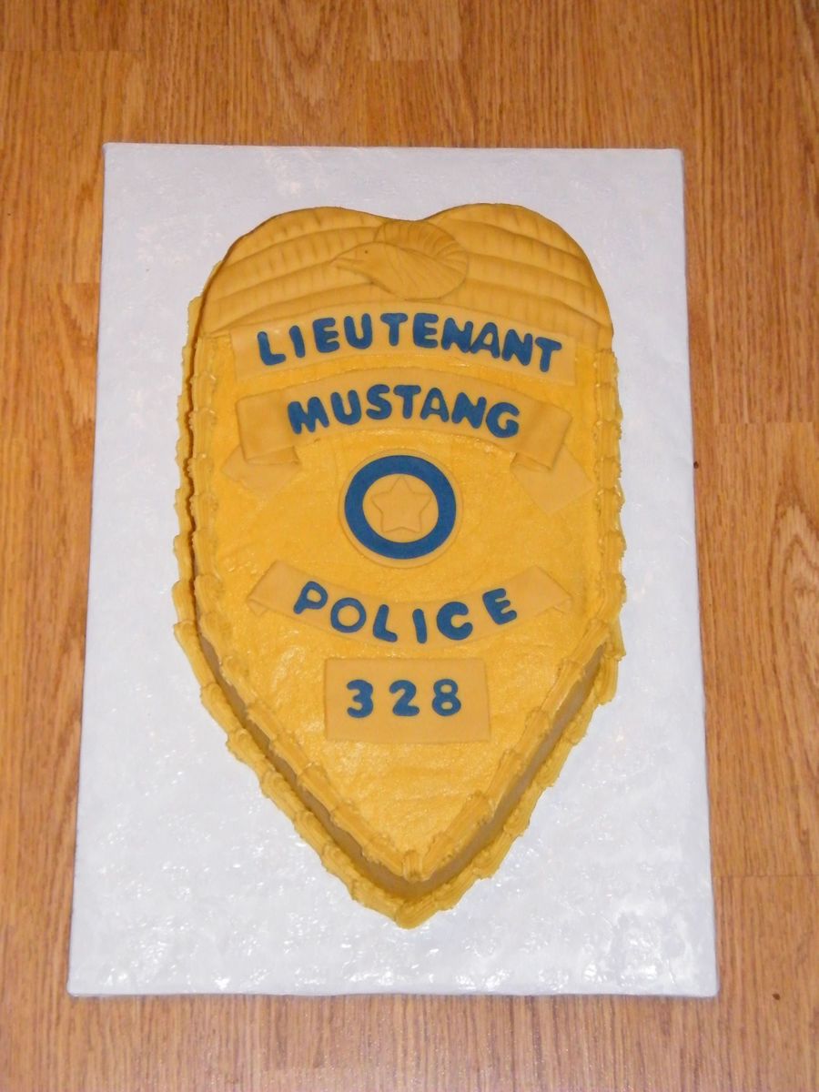 Badge made to match the one he wears. b/c frosting with fondant accents