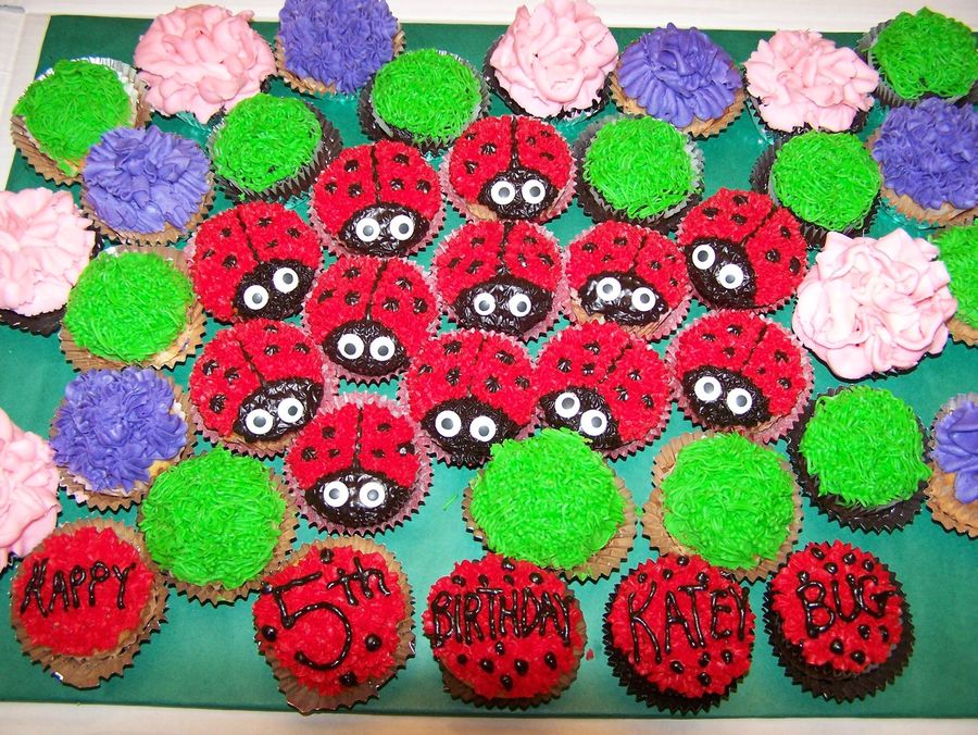 Buttercream icing, Hershey's special dark icing for the black (no black dye), flowers and grass. Used edible eyes.