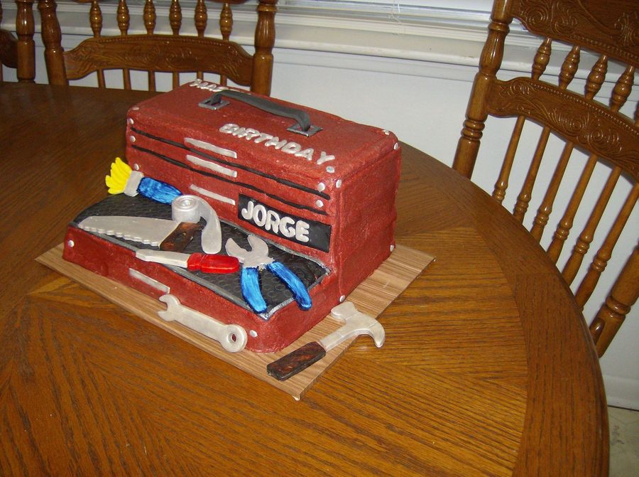 Tool box birthday cake. All buttercream with fondant tools & handle.