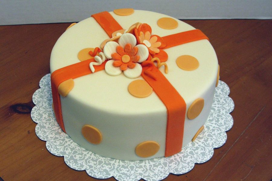 A dreamsicle cake, & she wanted orange & cream coloring to match, & dots and stripes. I wasn't sure how that combo was going to look on a one tier cake, but it worked out much better than I was afraid it was going to!