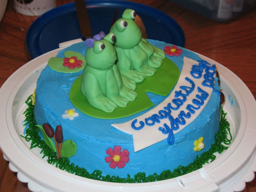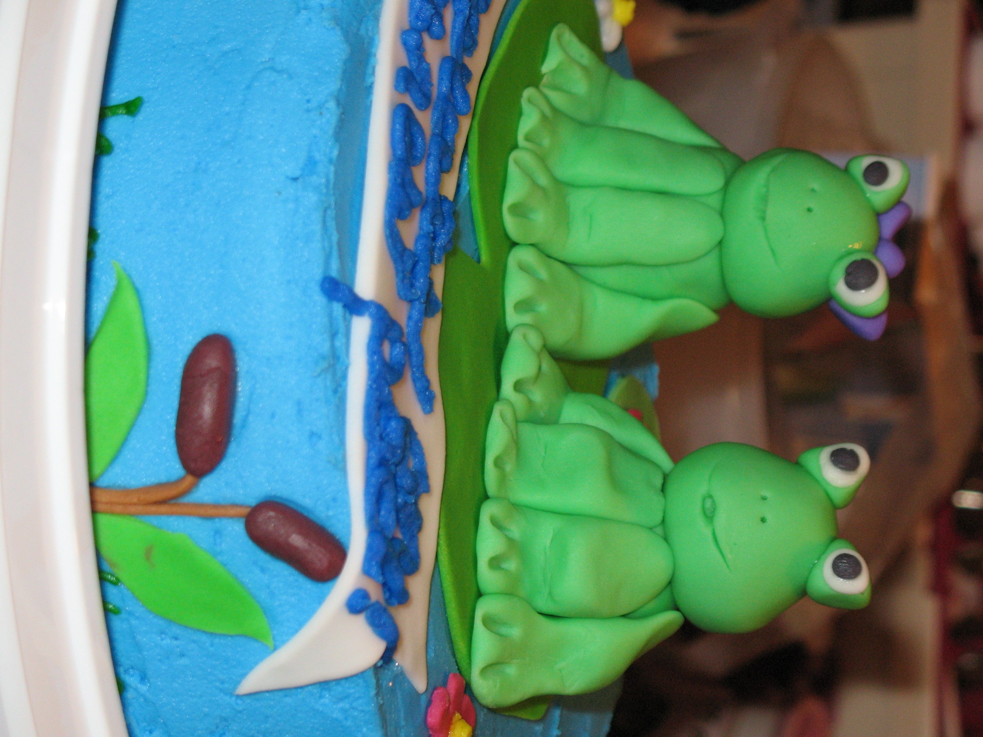 I made this 10" round chocolate cake, for a friend who just moved into a new house. She loves frogs, so we put a little spin on the word "pad"! She loves it.