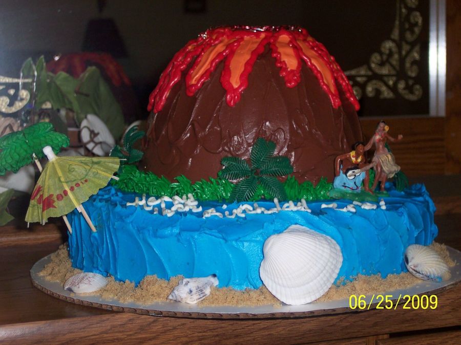 used x large glass pyrex measuring cup to bake the volcano, customer put real fireworks at top to make it explode