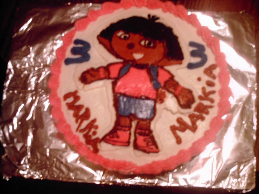 Dora cake with buttercream icing. Image is buttercream transfer!!