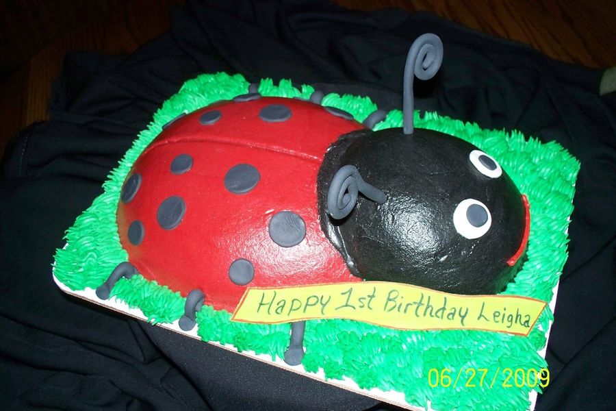 Chocolate cake with buttercream icing and fondant accents.