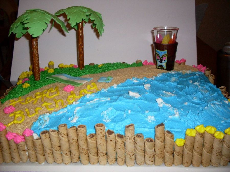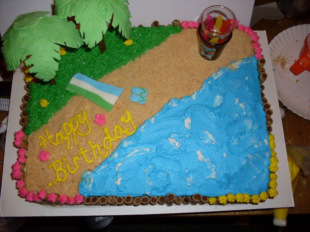Thanks to all CC members for their ideas! The sand is crushed and sifted cinnamon grahams, honey teddy grahams, mini nilla wafers, and sparkling organic sugar. Everything is fondant except the shot glasses. My customer wanted a Hawaii themed caked for the grandmother's 80th Anniversary. I saw the shot glasses and thought they would be a great addition to the cake. The client LOVEd the cake so much. As always, alot of people commented on how GREAT the cake looked. TFL!!!