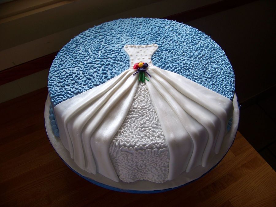 WASC cake with raspberry mousse and almond buttercream. Fondant dress. Inspiration from several cakes here on CC.
